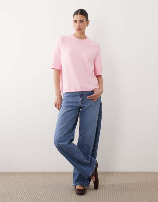 Jersey rosa de media manga raglán de punto de ASOS DESIGN