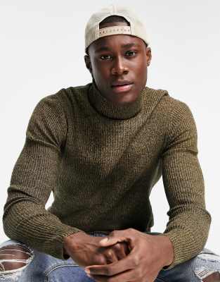 Jersey tostado ajustado de cuello alto de canalé de ASOS DESIGN