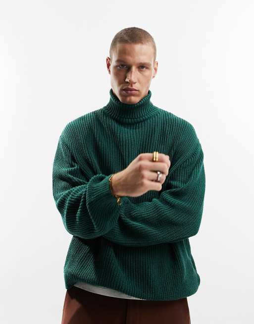Jersey verde extragrande con cuello vuelto de punto inglés de ASOS DESIGN