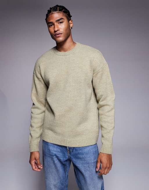 Jersey verde salvia holgado con cuello redondo de punto de ASOS DESIGN