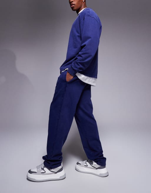 Joggers azul marino lavado de pernera recta de ASOS DESIGN (parte de un conjunto)
