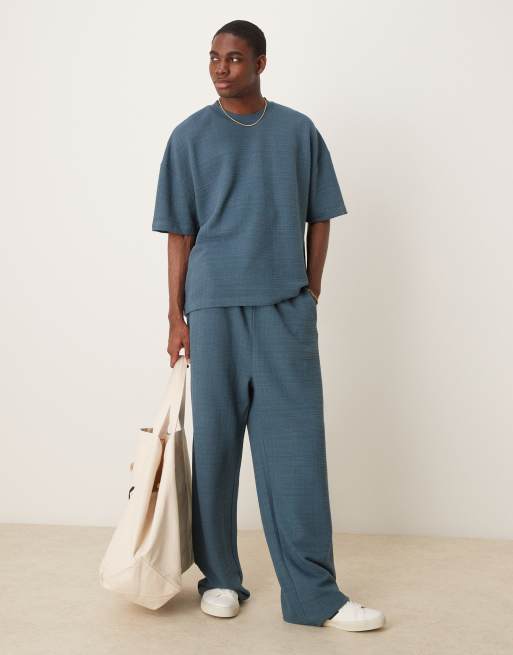 Joggers azules de pernera ancha de tejido efecto lino de ASOS DESIGN