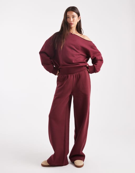 Joggers burdeos de pernera ancha con interior cepillado de ASOS DESIGN