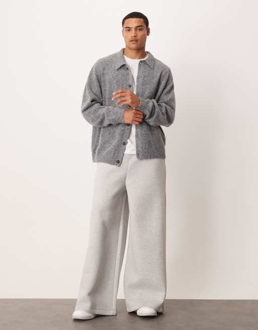 Joggers gris jaspeado de pernera muy ancha de tejido efecto neopreno de ASOS DESIGN
