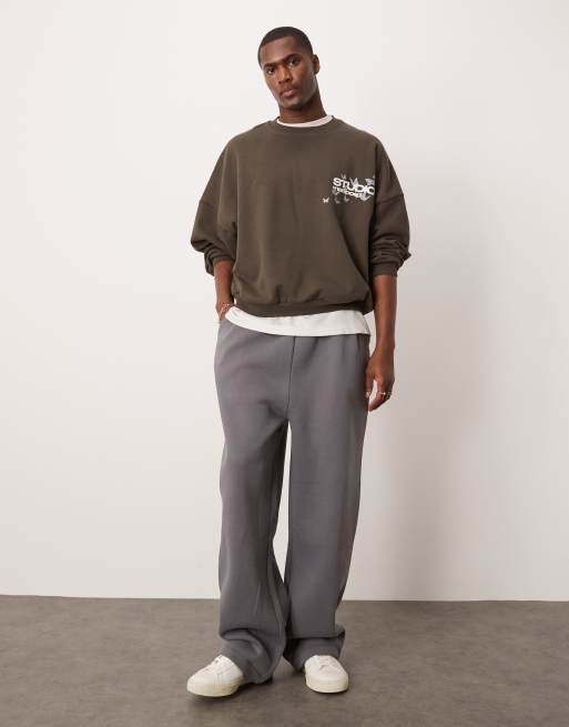 Joggers gris oscuro de pernera ancha con pinzas de ASOS DESIGN