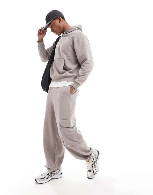 Joggers marrón lavado extragrandes con bolsillos cargo de ASOS DESIGN (parte de un conjunto)