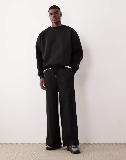 Joggers negros de corte muy ancho de tejido efecto neopreno de ASOS DESIGN