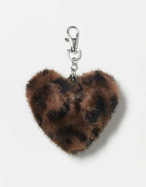 Llavero marrón con estampado de leopardo en forma de corazón de tejido mullido de ASOS DESIGN