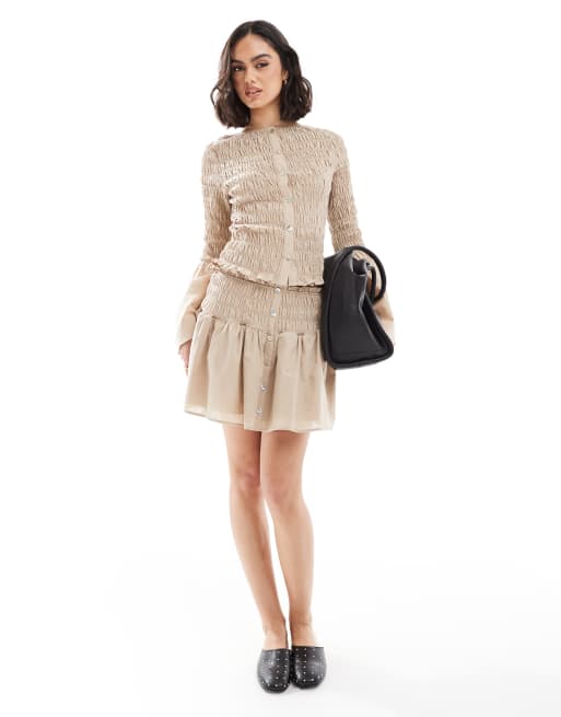 Minifalda beis fruncida con cintura baja de ASOS DESIGN