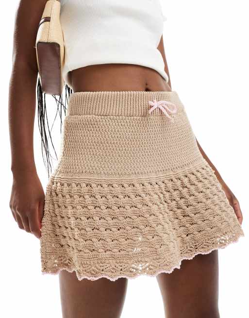 Minifalda color moca con volantes de punto de ASOS DESIGN
