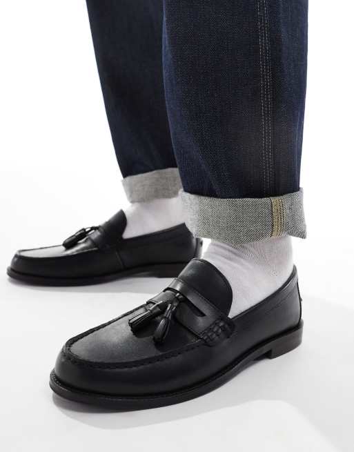Mocasines clásicos negros con borlas de cuero de ASOS DESIGN