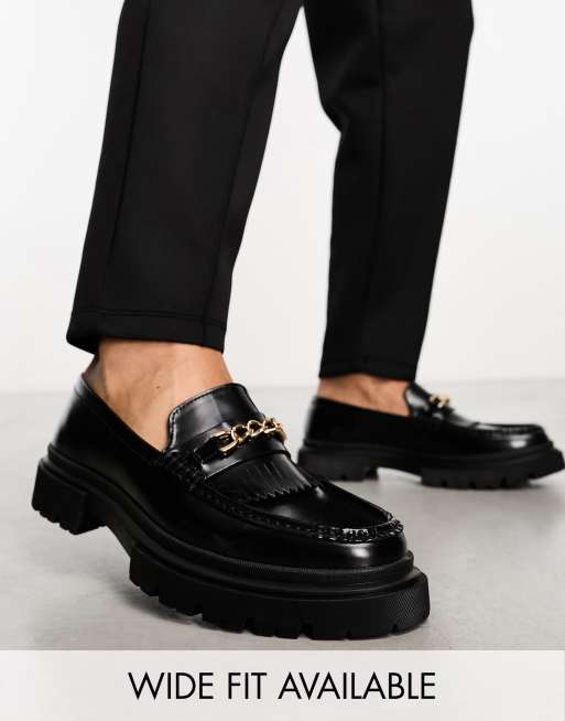 Mocasines negros con suela gruesa y detalle de bridón de cuero de ASOS DESIGN