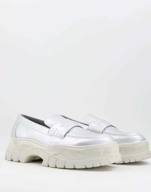 Mocasines plateados con suela gruesa en contraste de cuero sintético de ASOS DESIGN