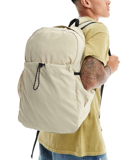 Mochila color crudo con detalles negros de tejido suave de ASOS DESIGN