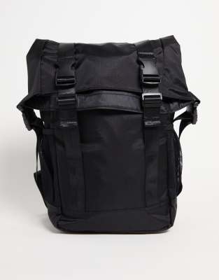 Mochila negra con solapa superior plegada y correas dobles de nailon de ASOS DESIGN