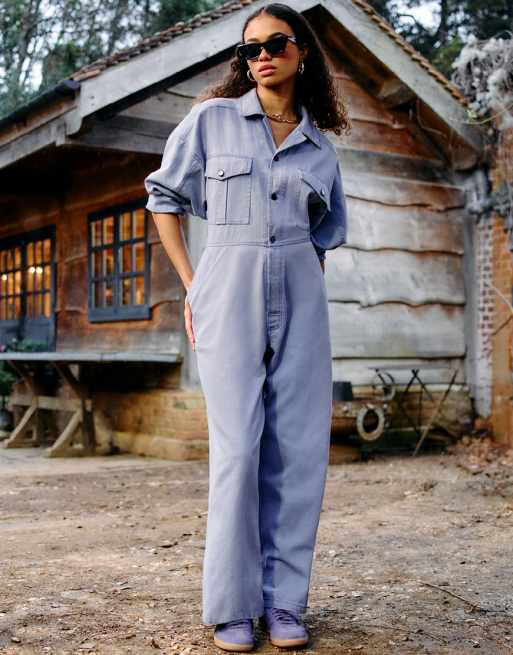 Mono azul estilo worker con solapas y detalle de botones en la pernera de ASOS DESIGN