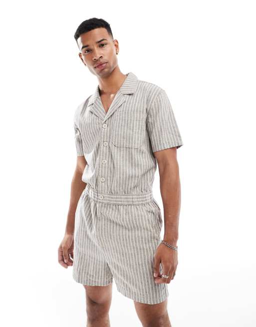 Mono azul y blanco a rayas estilo worker con cinturilla elástica de ASOS DESIGN