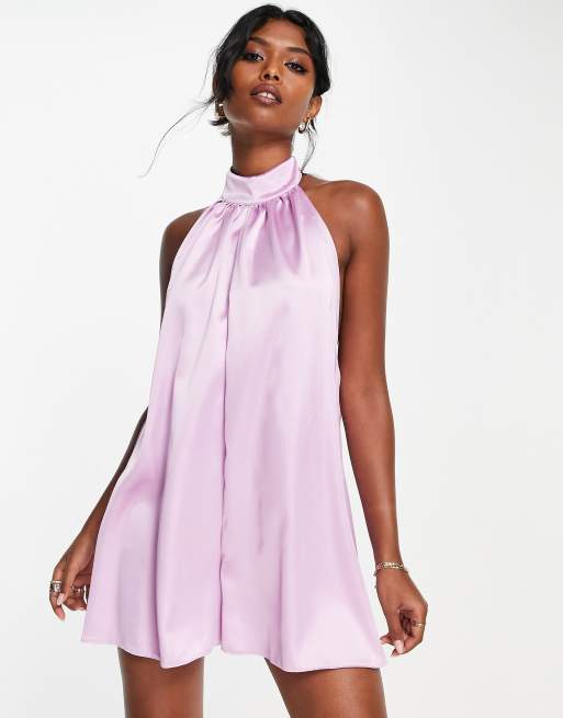Mono corto lila con cuello halter de satén de ASOS DESIGN