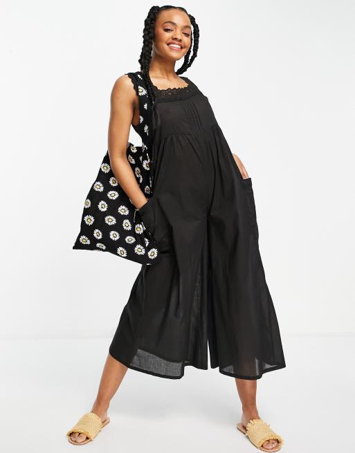 Mono corto negro con ribete bordado de ASOS DESIGN