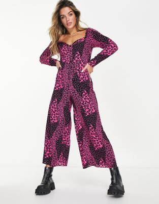 Mono de tarde largo rosa de estilo mesonera y manga larga con estampado variado de crepé texturizado de ASOS DESIGN