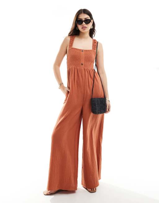 Mono largo color óxido con cuerpo fruncido y tirantes elásticos de ASOS DESIGN