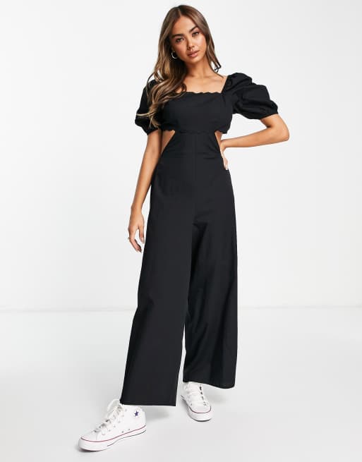 Mono largo negro con mangas abullonadas y cuello festoneado de ASOS DESIGN