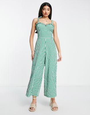 Mono largo verde a cuadros vichy con escote corazón y tirantes anudados de ASOS DESIGN