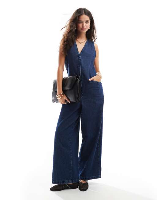 Mono vaquero largo sin mangas de corte suelto con lavado enjuagado de ASOS DESIGN