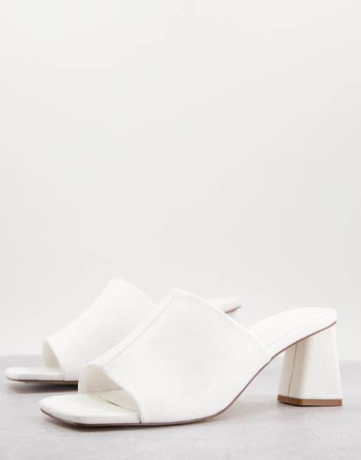 Mules blancos con tacón de cuero sintético de ASOS DESIGN