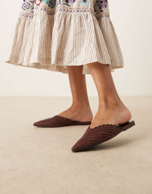 Mules burdeos planas con puntera fina y diseño calado Labyrinth de ASOS DESIGN