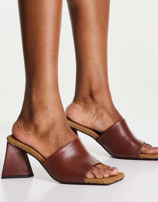 Mules marrones con tacón medio de cuero premium Healing de ASOS DESIGN