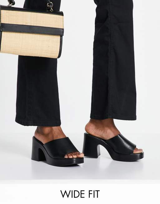 Mules negras con tacón Harper de ASOS DESIGN Wide Fit
