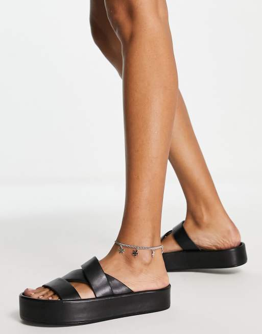 Mules negras planas de cuero premium Freezing de ASOS DESIGN