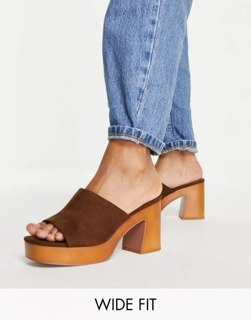 Mules tostados con plataforma y tacón medio Harmony de ASOS DESIGN Wide Fit