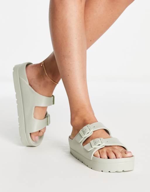 Mules verde salvia con plataforma plana de goma Fawn de ASOS DESIGN