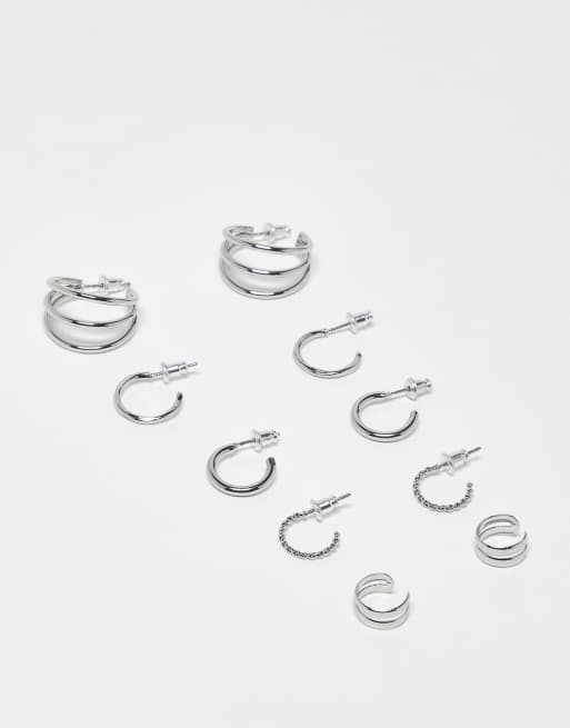 Multipack de pendientes de aro y ear cuffs plateados de ASOS DESIGN