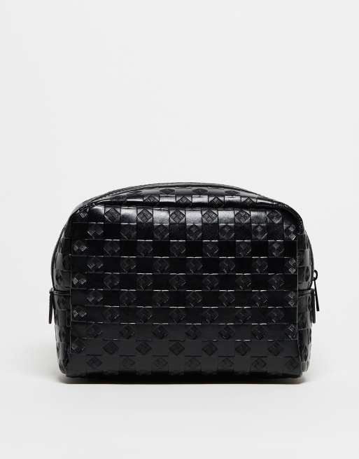 Neceser negro con diseño a cuadros dameros en relieve de cuero sintético de ASOS DESIGN