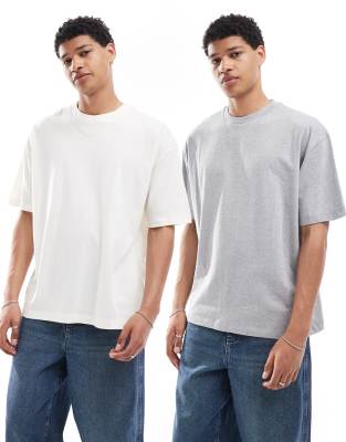 Pack de 2 camisetas de color crema y gris jaspeado básicas extragrandes de ASOS DESIGN