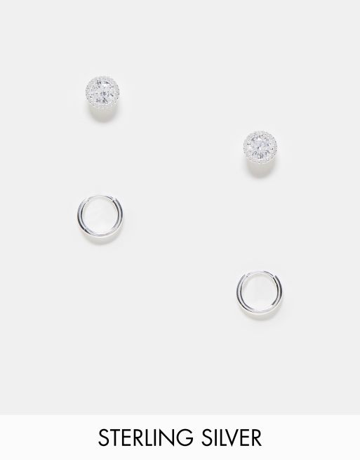 Pack de 2 pares de pendientes de botón y aros de plata de ley de ASOS DESIGN