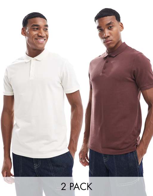 Pack de 2 polos de color crema y marrón de piqué de ASOS DESIGN