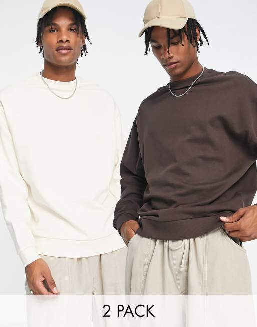 Pack de 2 sudaderas extragrandes de color marrón/crema de ASOS DESIGN