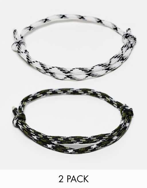 Pack de 2 tobilleras de color negro y blanco de cuerda de ASOS DESIGN