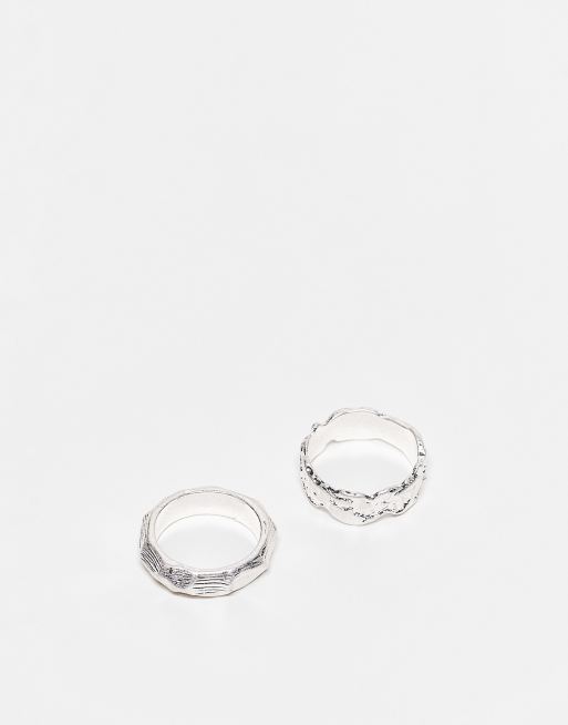 Pack de 2 anillos de banda plateados con diseño efecto fundido de ASOS DESIGN