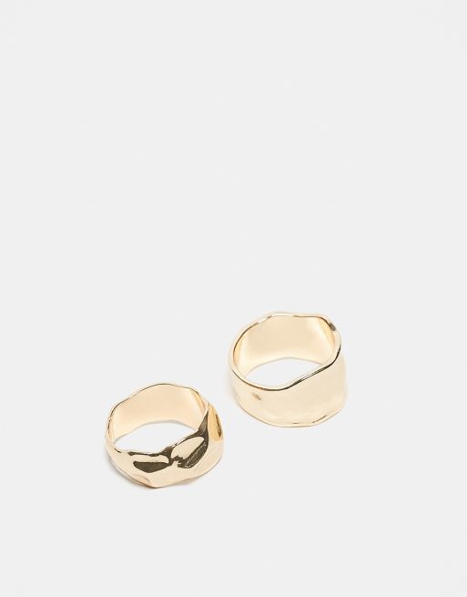 Pack de 2 anillos dorados anchos con diseño efecto fundido de ASOS DESIGN