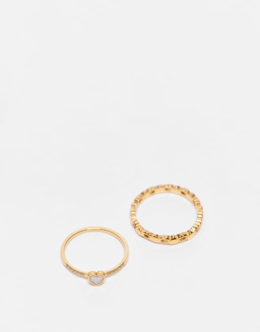 Pack de 2 anillos dorados con diseño de corazón de acero inoxidable de ASOS DESIGN