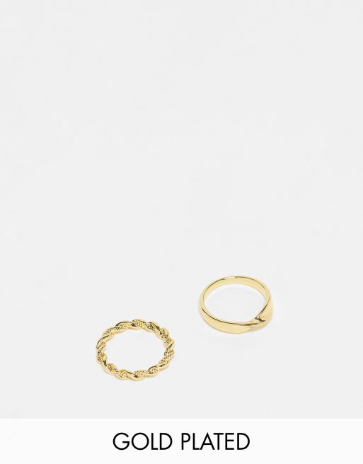 Pack de 2 anillos dorados con diseño retorcido chapados en oro de 14 quilates de ASOS DESIGN