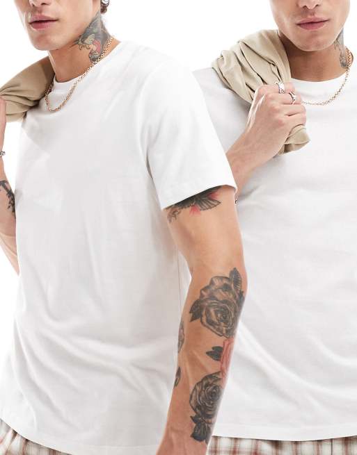 Pack de 2 camisetas blancas básicas con cuello redondo de ASOS DESIGN
