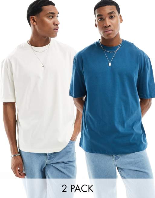 Pack de 2 camisetas de color azul y crudo extragrandes de ASOS DESIGN