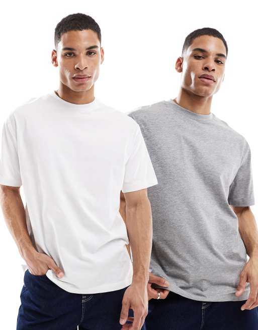 Pack de 2 camisetas de color blanco y gris básicas holgadas de ASOS DESIGN
