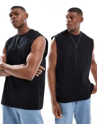Pack de 2 camisetas negras básicas extragrandes sin mangas de ASOS DESIGN